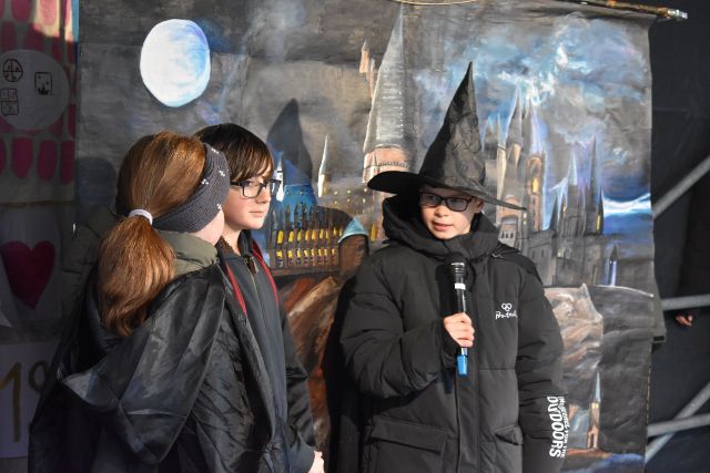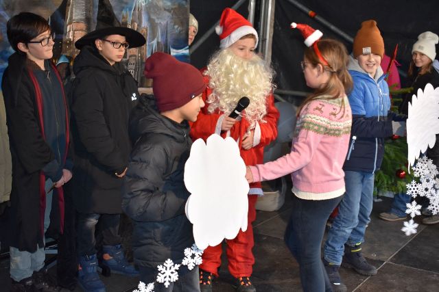 Am 3.12.2025 führte die Klasse 5bu ihr selbst entwickeltes Theaterstück „Der Zauber von Weihnachten“ im Dossenbergerhof auf. Dort wurde um 12 Uhr die Günzburger Altstadtweihnacht eröffnet und direkt nach der Ansprache des Bürgermeisters, Herrn Jauernig, spielten die Kinder die Geschichte von dem bösen Zauberer Lord Vollmond, der Weihnachten hasst und deshalb versucht, mit Hilfe von Harry, Hermine und seiner Zauberkatze das Weihnachtsfest zu ruinieren.