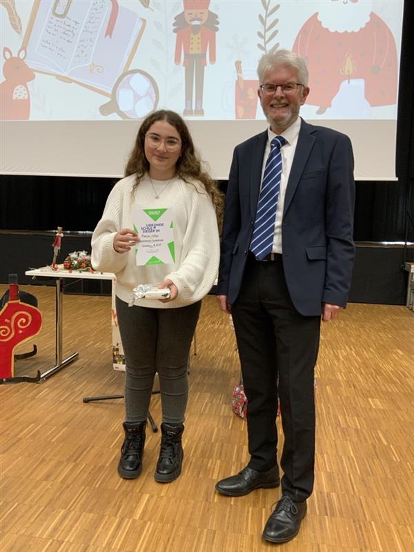Zum Abschluss gratulierte Herr Lang allen Teilnehmerinnen herzlich und überreichte Buchpreise als Anerkennung für ihre Leistungen. Das Publikum würdigte die Vorleserinnen mit langanhaltendem Applaus – ein gelungener Höhepunkt in der Vorweihnachtszeit und ein wunderbares Zeichen dafür, wie lebendig die Lesekultur an unserer Schule ist.