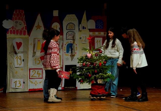 Eröffnet wurde der Weihnachtsmarkt durch Herrn Ruß nach einem Auftritt der Percussion-Gruppe unter der Leitung von Herrn Broy auf der großen Bühne in der Aula. Es folgten vier Lieder der Grundschule „Auf der Bleiche“, deren Klassen seit dem Hochwasser 2024 zum Teil bei uns untergekommen sind. Danach war die Klasse 5bu mit ihrem selbstgeschriebenen Theaterstück „Der Zauber von Weihnachten“ an der Reihe. Für tolle Sound- und Lichteffekte sorgte hierbei die Technik-AG unter der Leitung von Herrn Stadelmann.